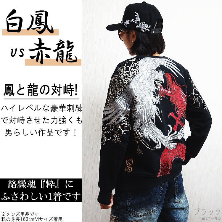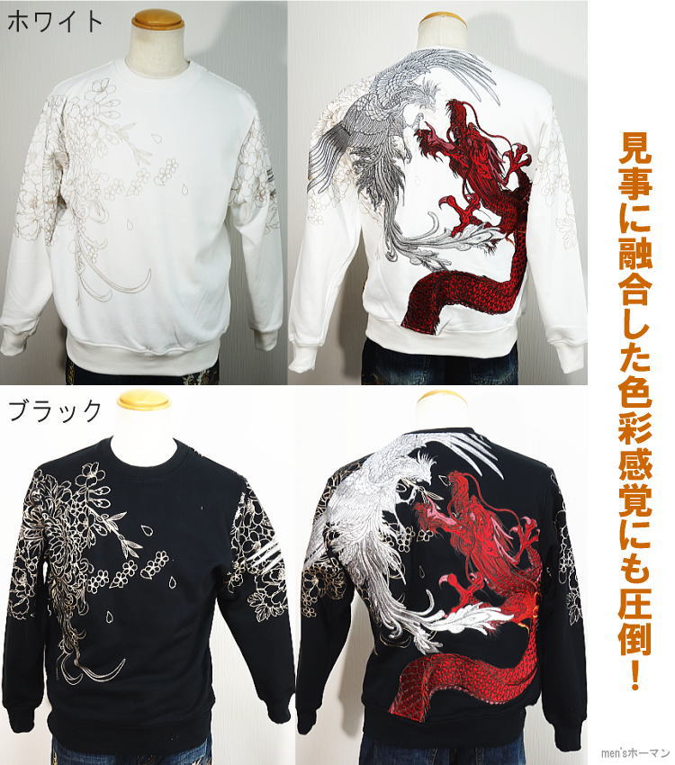2017年秋冬物新作【ビッグ有】絡繰魂/カラクリ魂/からくり魂 粋【送料無料】白鳳vs赤龍刺繍 裏毛 和柄トレーナー 白/黒 M/L/XL/XXL【smtb-k】【ky】父の日【YDKG-k】メンズ【ky】ギフト【RCP】274552